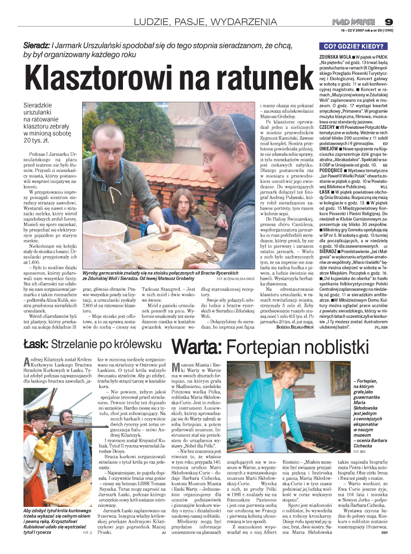 sponsorom-dobroczyńcom, szczególnie władzom miasta. Dumni z wizyty dwóch ekip telewizyjnych z Łodzi i zainteresowania lokalnych mediów. I już zaczęli mówić o atrakcjach kolejnego jarmarku w przyszłym roku.