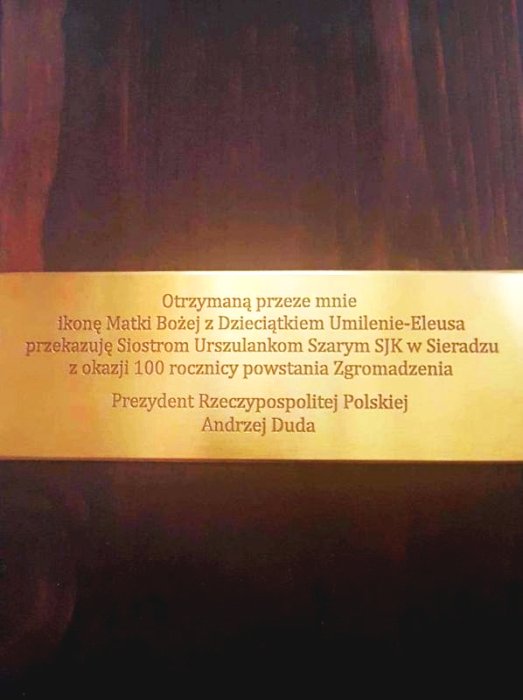 Jako dar jubileuszowy otrzymałyśmy od p. Prezydenta RP piękną ikonę Matki Bożej z Dzieciątkiem.