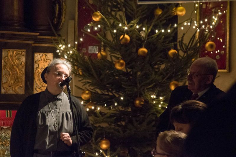 z krajów, w których pracują Czcigodne Siostry Urszulanki. Zgromadzeni w sieradzkim klasztorze mogli usłyszeć kolędy z naprawdę odległych krańców Ziemi, jak np., Kanada, Brazylia, Argentyna czy nieco bliższych, np. Ukraina, Białoruś, Niemcy i Rosja. Najtrudniejszym lingwistycznie utworem okazała się kolęda z Finlandii, choć przecież opanowaliśmy też kolędę w języku suahili z Tanzanii. Podczas koncertu można było obejrzeć prezentację multimedialną, która przybliżała obrazy z życia Urszulanek ofiarnie pracujących na całym świecie. Ten koncert jest wyrazem podziękowania Wielebnym Siostrom za Wasze gorące i otwarte dla wszystkich serce, za trud, ofiarność