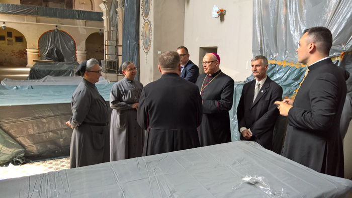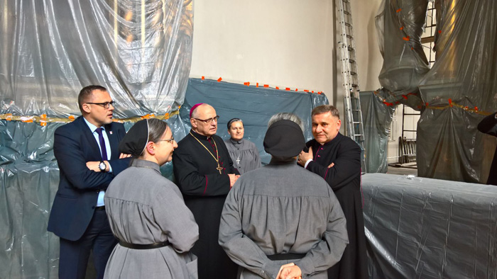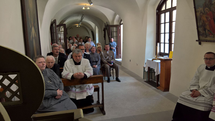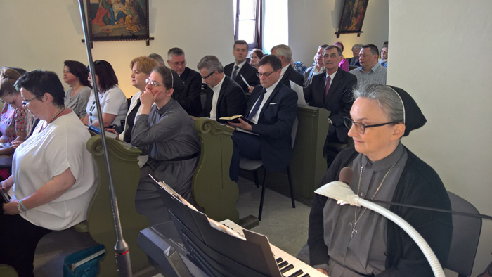 Liturgii Mszy św. koncelebrowanej w pięknych, odrestaurowanych, krużgankach towarzyszył nasz klasztorny chór Cantilena. Słowo wprowadzenia wygłosił Ks. Prałat Marian Bronikowski proboszcz naszej parfii. który z uznaniem wyrażał się o pracy sióstr, kontynuatorek misji św. Urszuli Ledóchowskiej Patronki Sieradza.